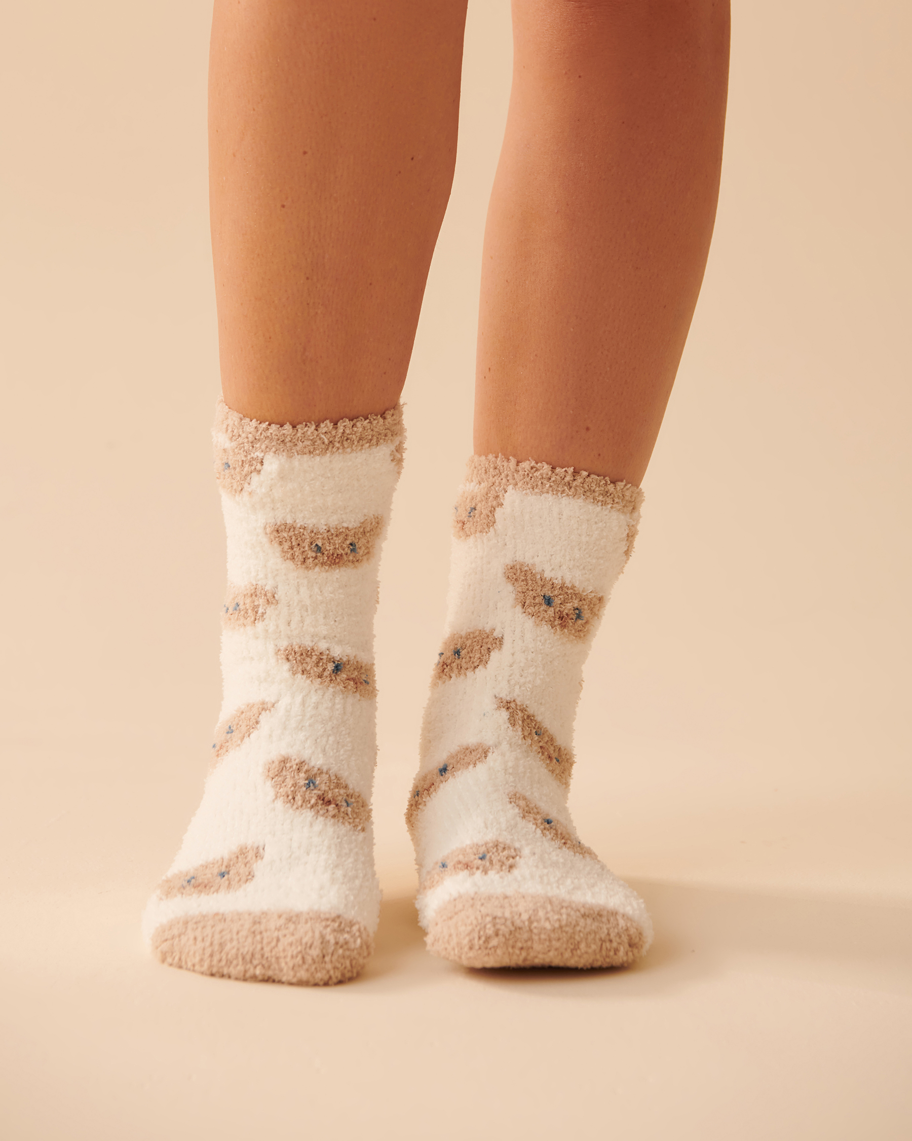 These adorable socks feature charming bears or plaid pattern and a cozy knitted effect offering both playful style and irresistibly soft comfort for your feet.