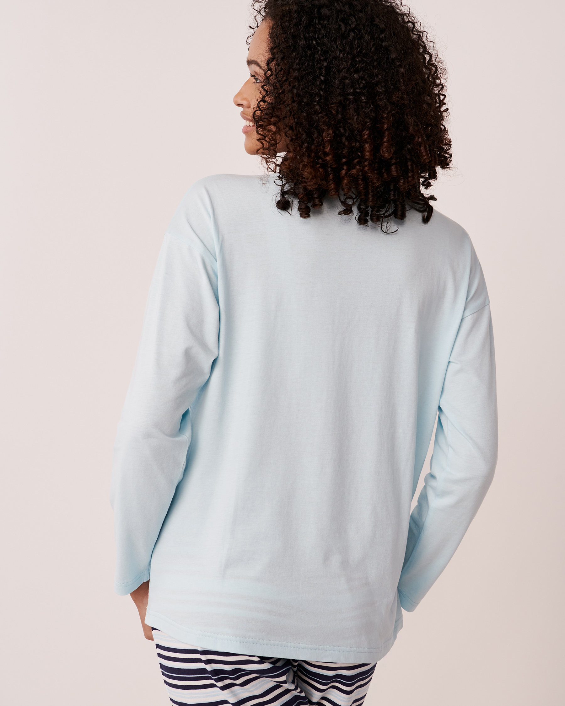 The perfect snack! Cotton scoop neck long sleeve shirt with glitter print at front.
