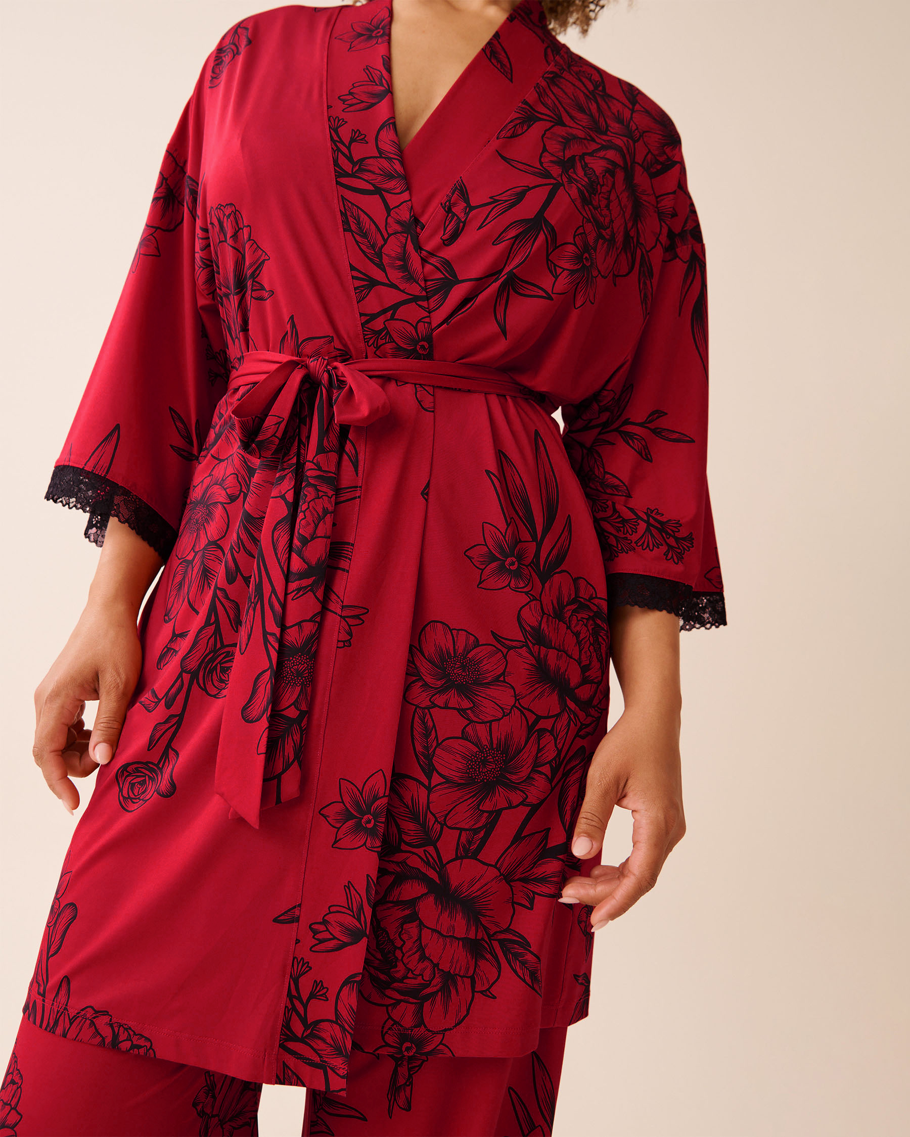 Crimson Bloom Recycled Fibers Lace Trim Kimono