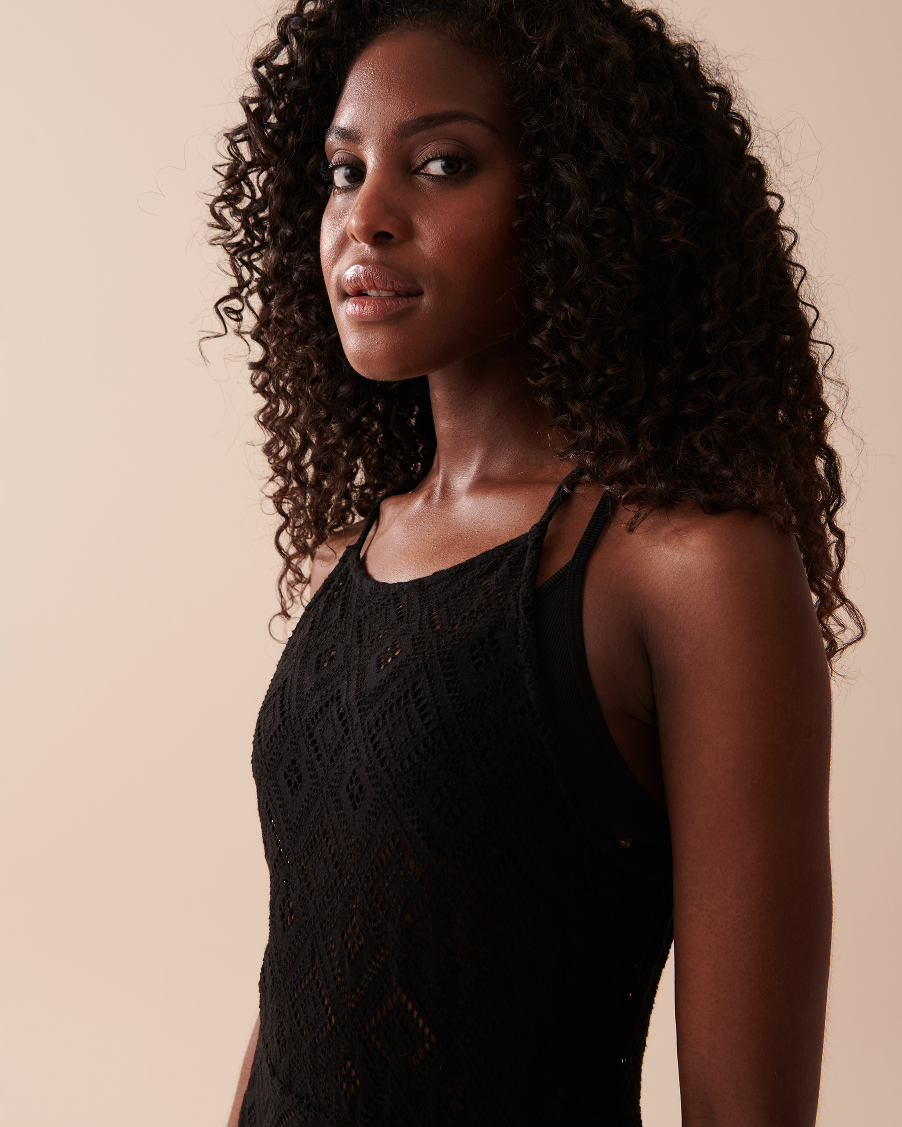 This comfortable yet flattering open-knit crochet is an easy coverup for the beach or poolside dips.