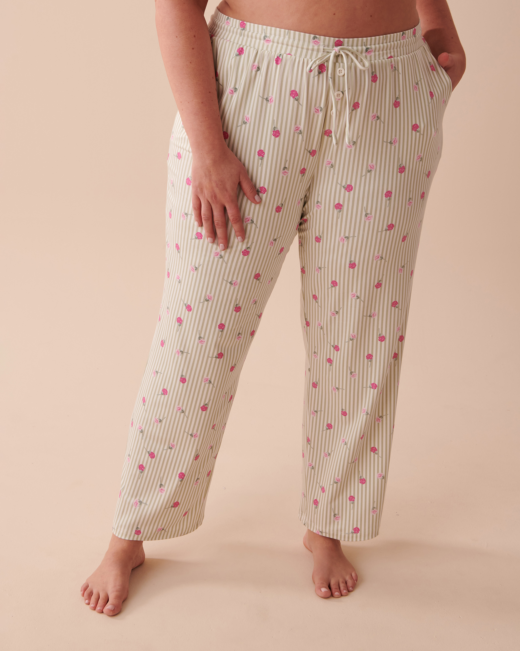 Our soothing sage-green pajamas with stripes and cute little flowers will give you long-lasting, unrivalled softness for even more comfortable nights.
