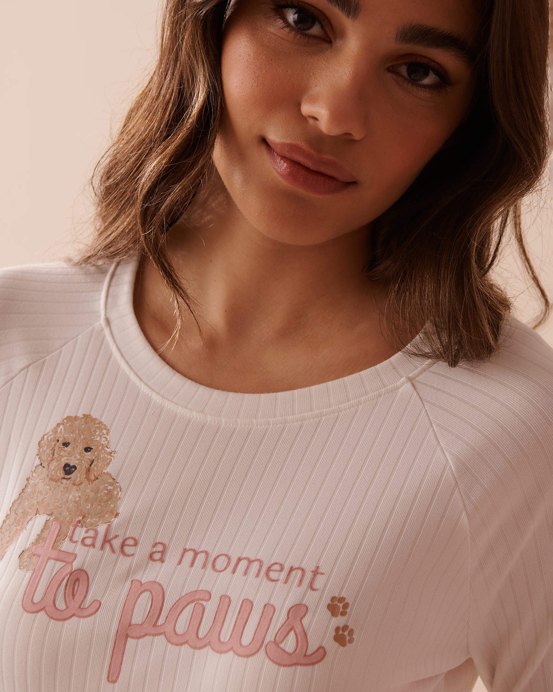 Dog Print Ribbed Jersey Long Sleeve Shirt