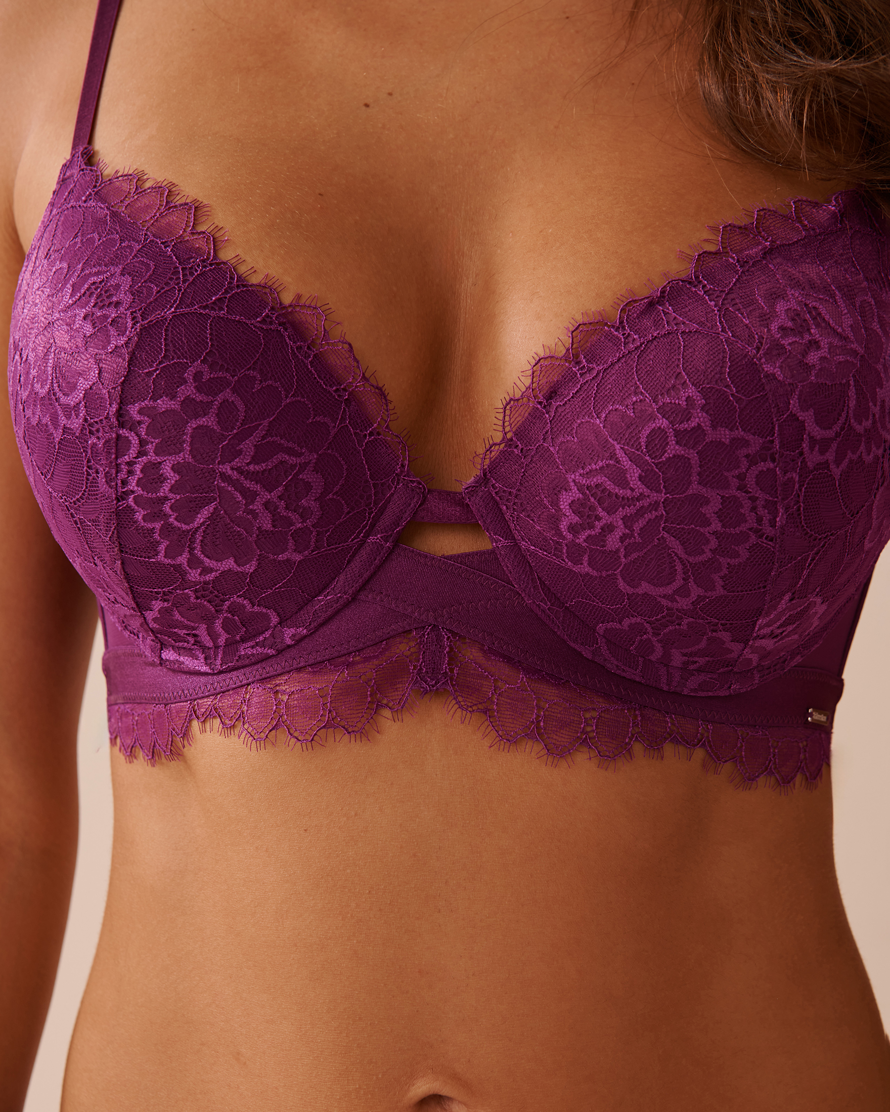 A super glam bra with bold floral lace and wide, shimmery bands. The push-up cups enhance your curves and provide a gorgeous lift.