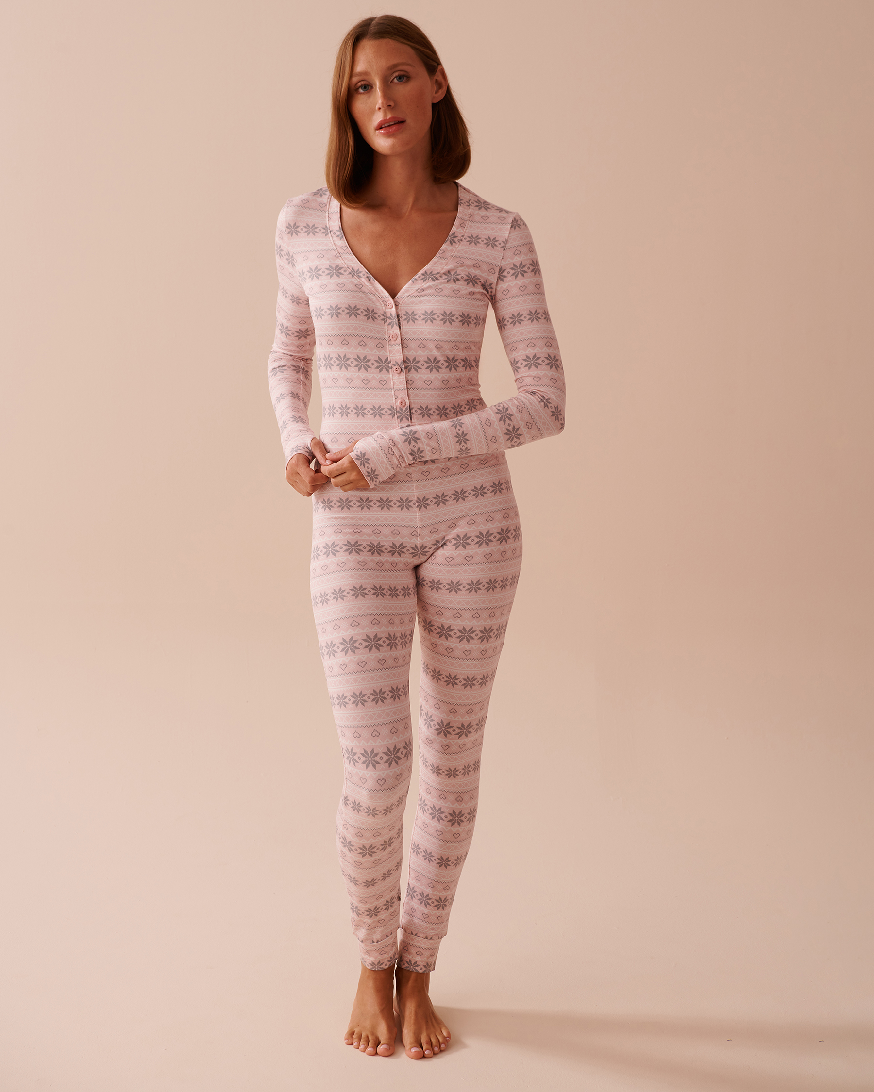 Love our peachy dream pajamas? Get ready to be obsessed with this figure-hugging jumpsuit. It's fitted for a flattering look but still feels like a dream. Plus, it comes in a classic winter print with soft, modern hues.