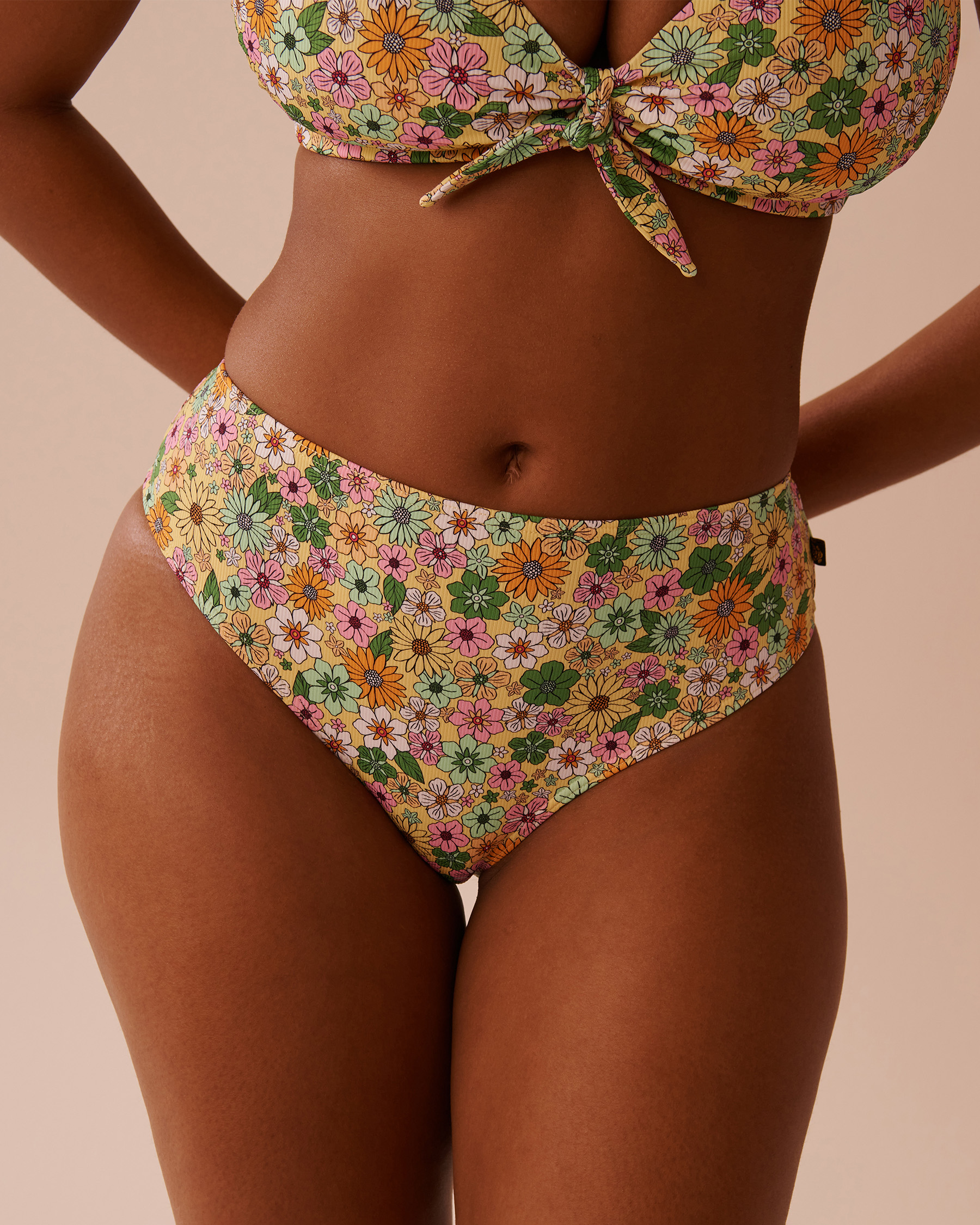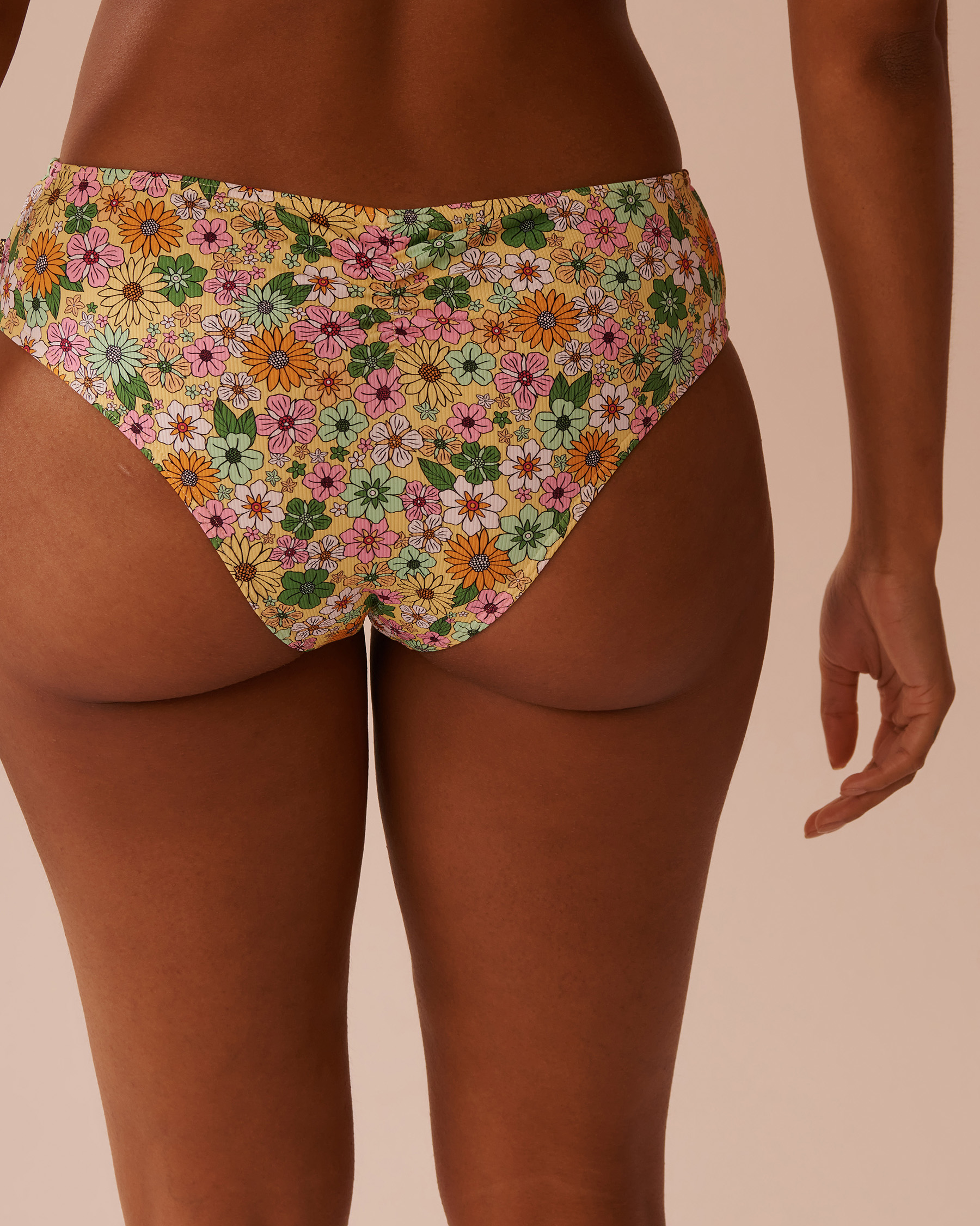 FLOWER POWER Ribbed Mid Waist Cheeky Bikini Bottom