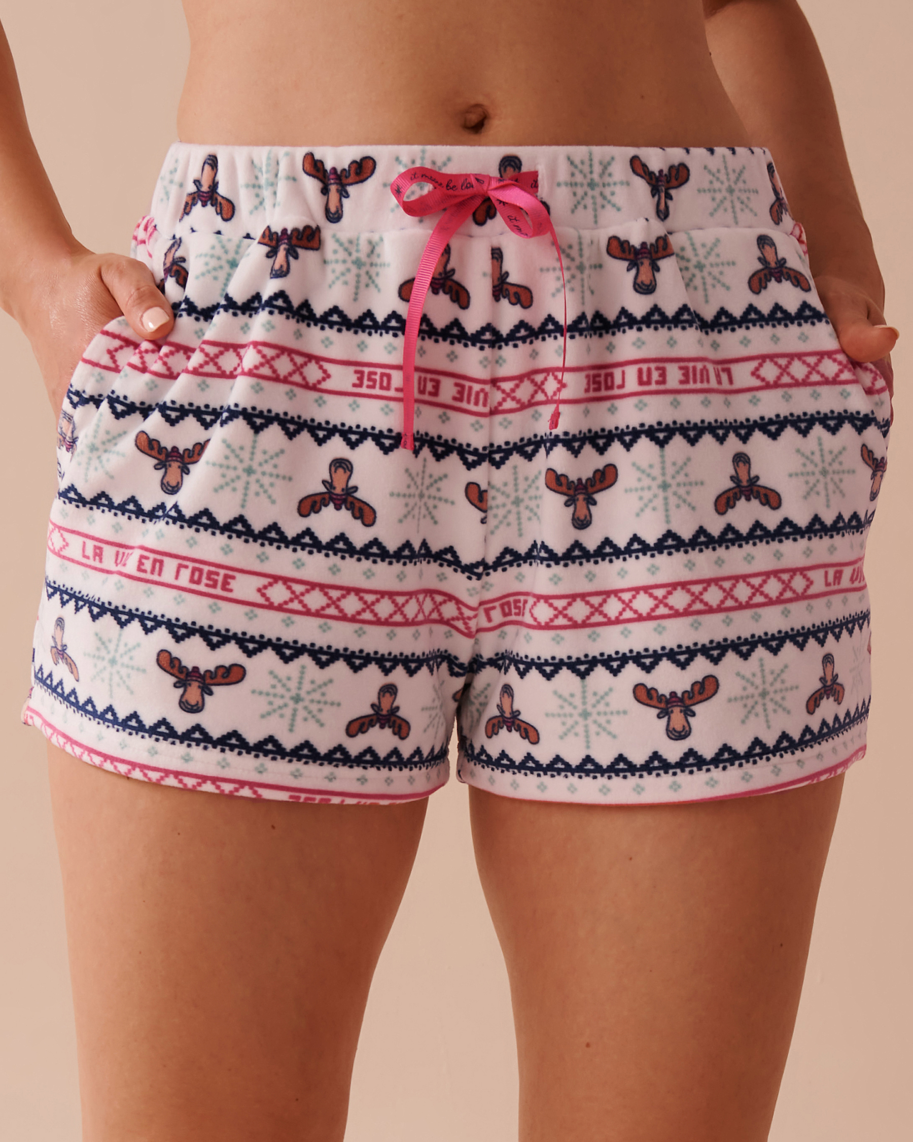 Moose Fair Isle Print Soft Velour Pajama Shorts