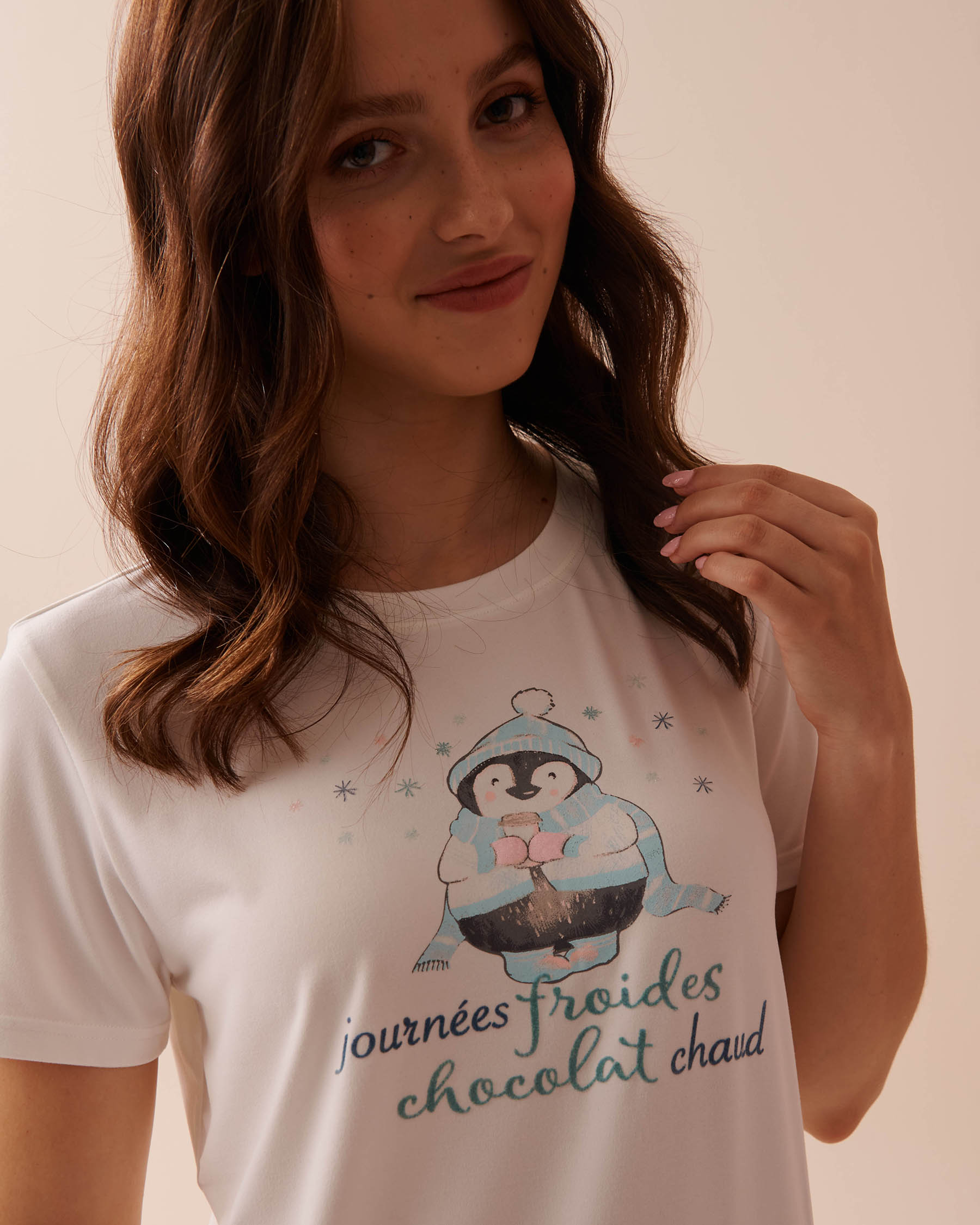 Super soft pajamas are a winter must-have! And this t-shirt perfectly captures the warm and festive spirit of the holiday season. With its adorable print and incredibly comfy fabric, it's perfect for those long, lazy mornings.