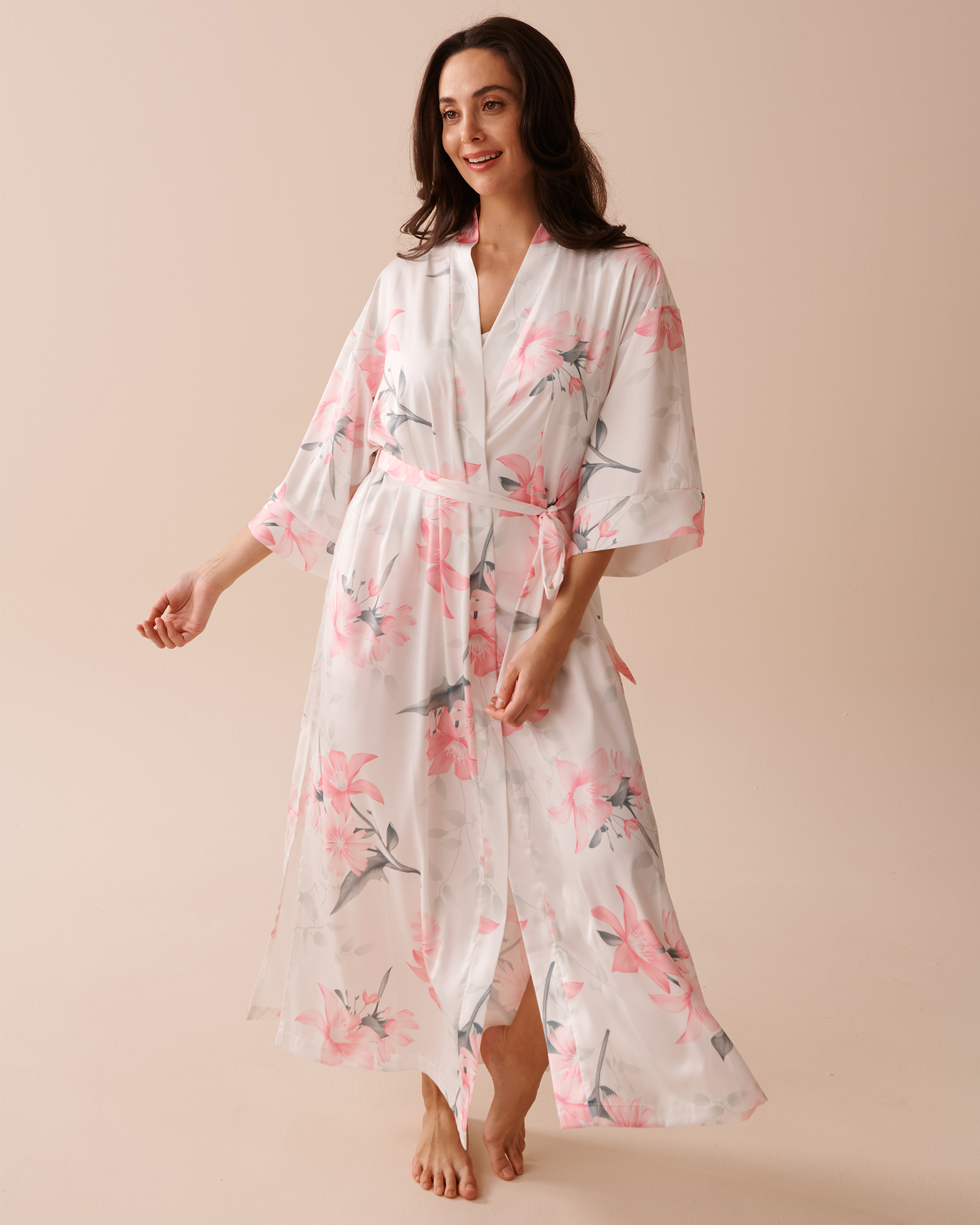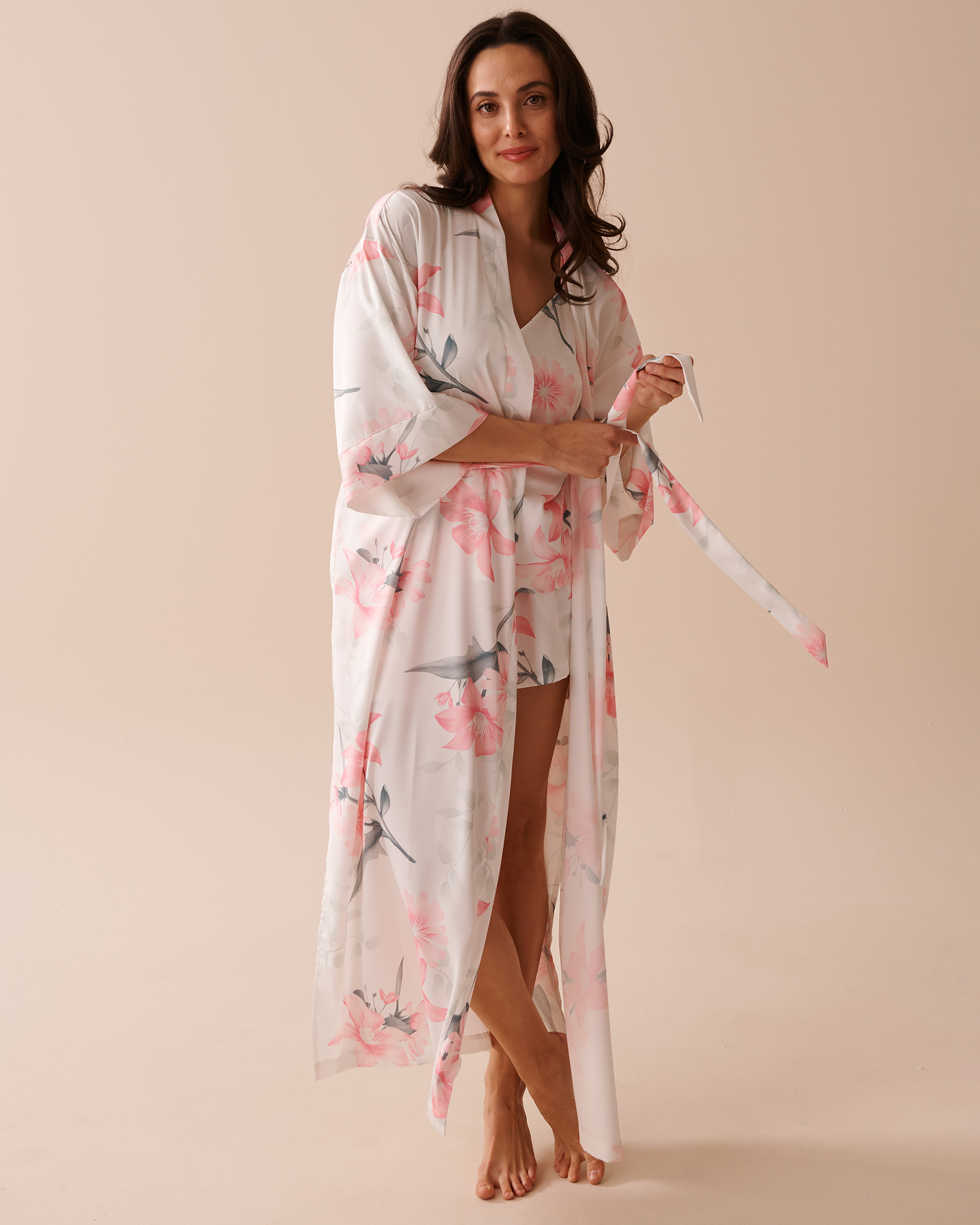 A smooth, silky satin piece in a calming floral print. You'll love how comfy and elegant it makes you feel.
