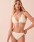 Say hello to our textured triangle bikini top, the ultimate fusion of chic and comfort, perfect for all your beach or pool adventures! With removable pads and adjustable straps, it offers customizable support and an ideal fit. And let's not forget the decorative strap at the center back, the textured fabric, and the scalloped hem that add an extra dose of charm to this piece.
