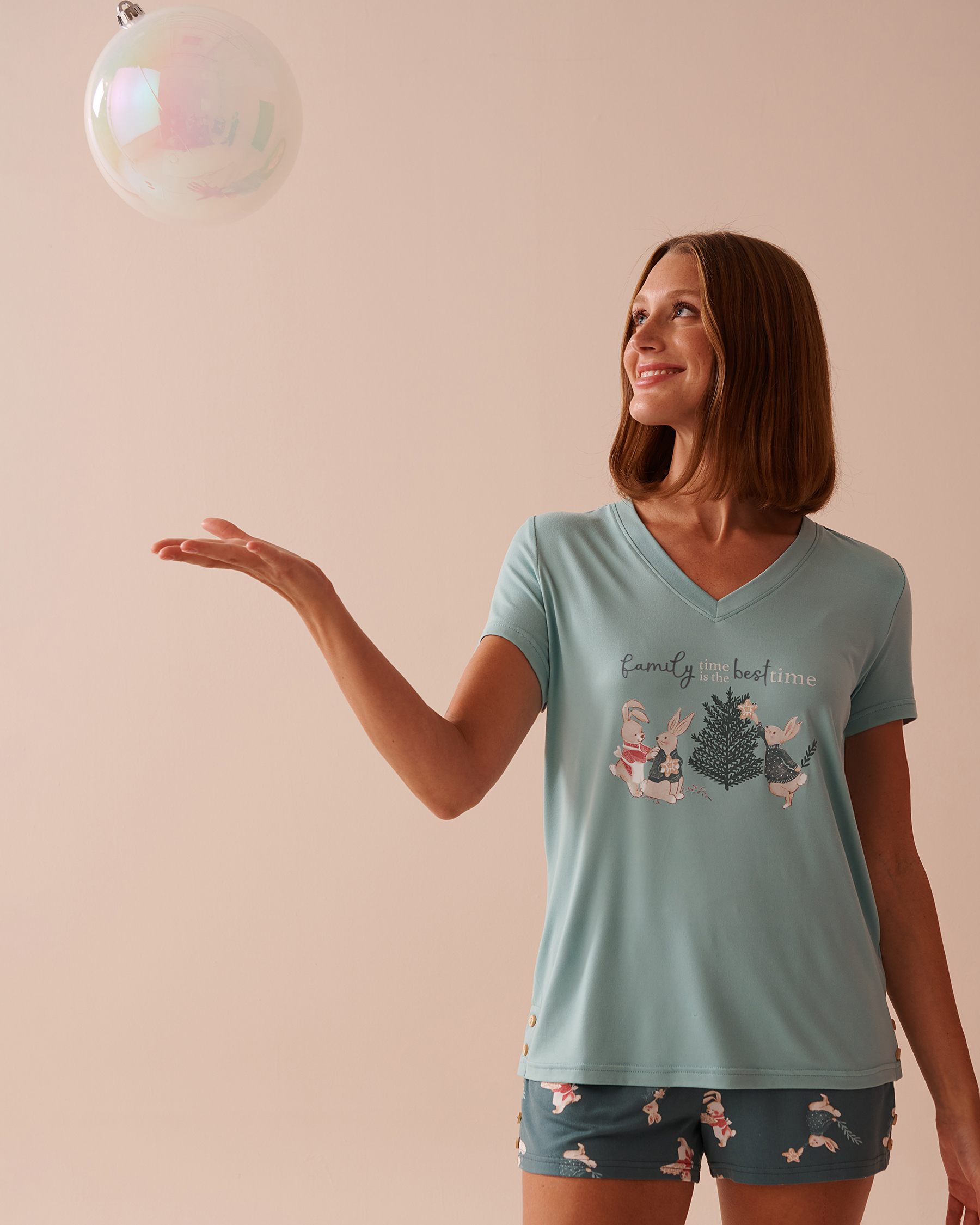 Super soft pajamas are a winter must-have! And this t-shirt perfectly captures the warm and festive spirit of the holiday season. With its adorable print and incredibly comfy fabric, it's perfect for those long, lazy mornings.