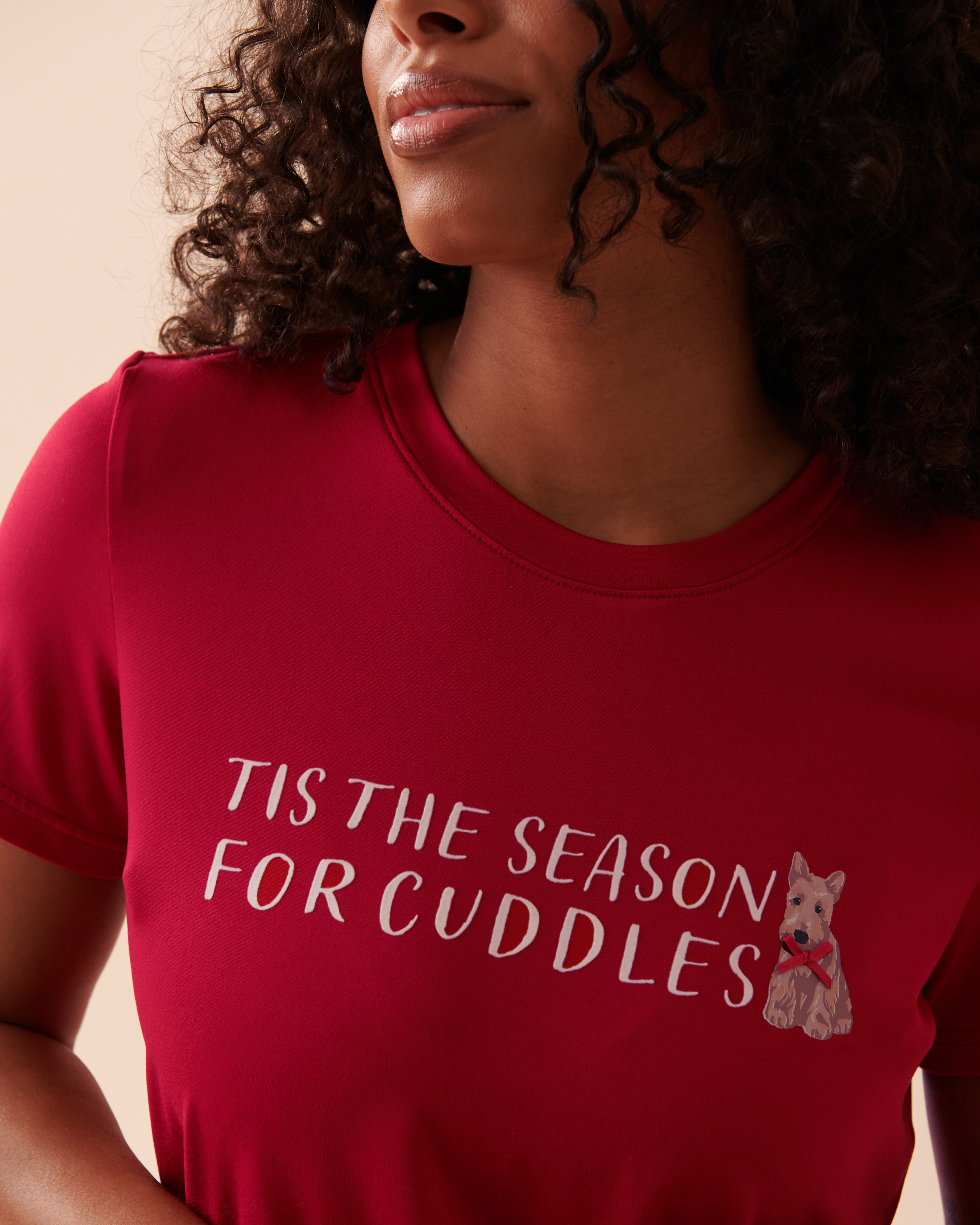Add an extra wag of joy to your holiday season with this Scottie print super soft crew neck t-shirt and experience cloud-like comfort! Just like our furry friends, let this t-shirt become a cherished part of your festive moments.