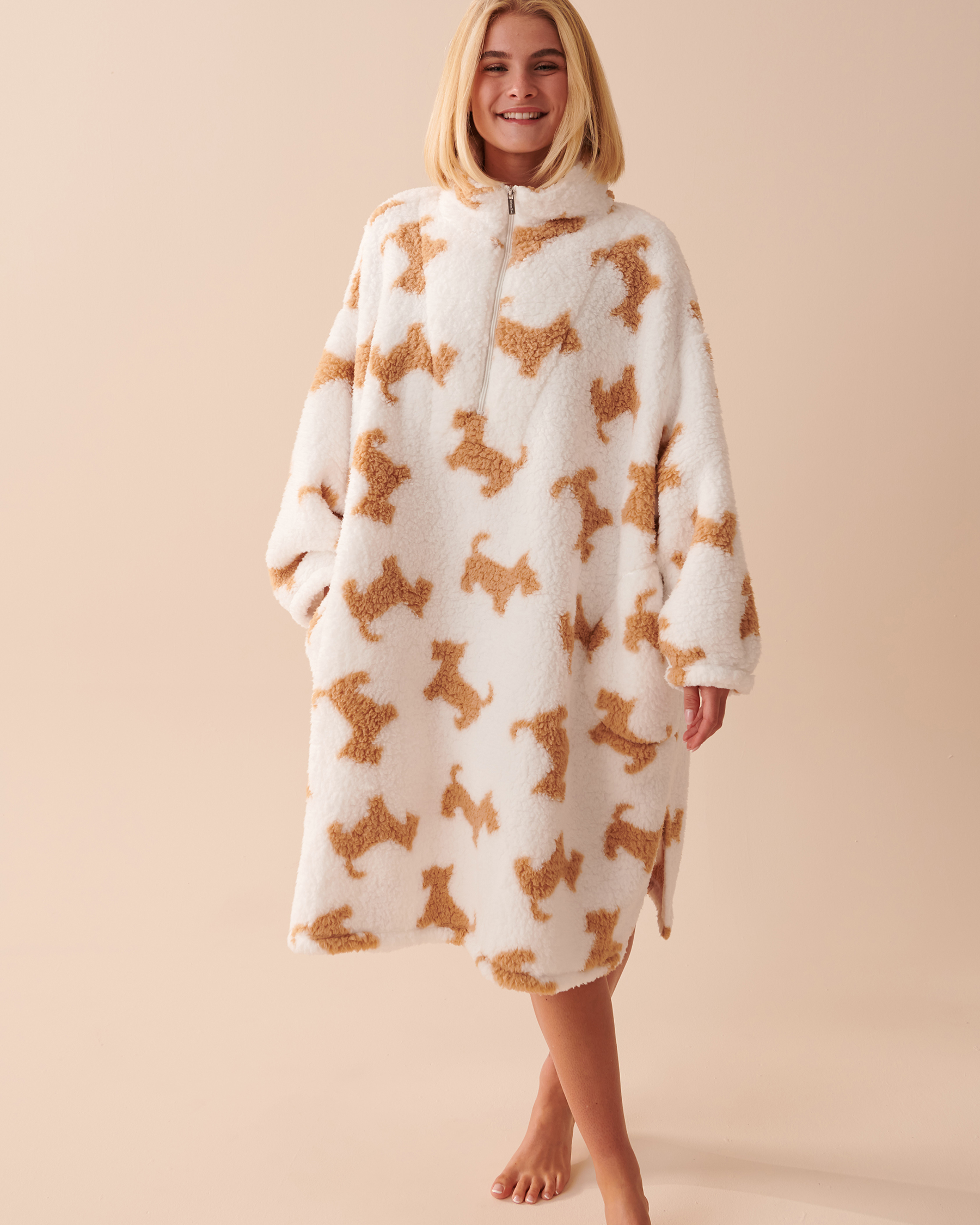 Scottie Print Zip-Up Oversized Sherpa Sweatshirt