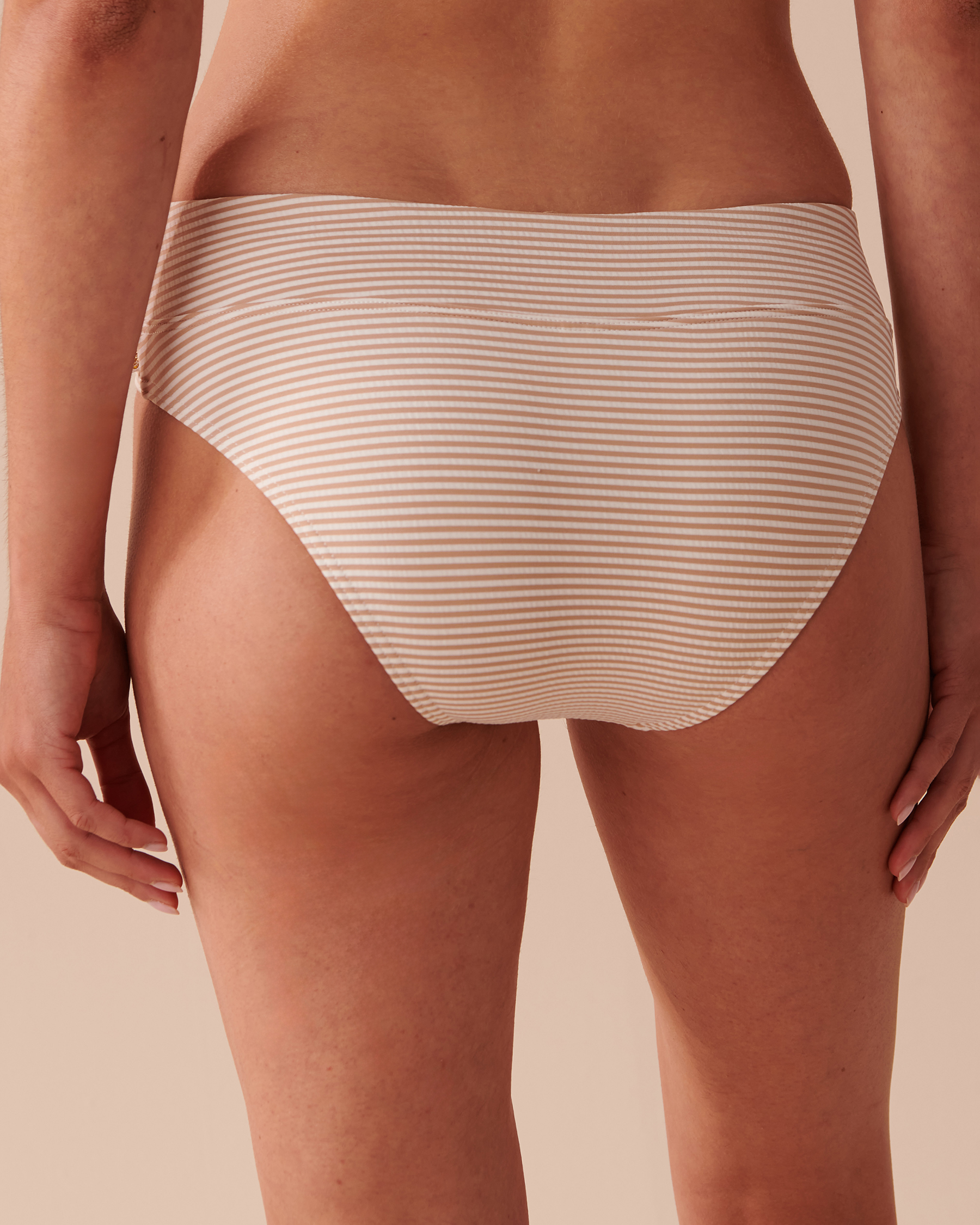 Hit the beach with comfort and confidence! Our seersucker mid-waist bikini bottoms will hug you in all the right places.