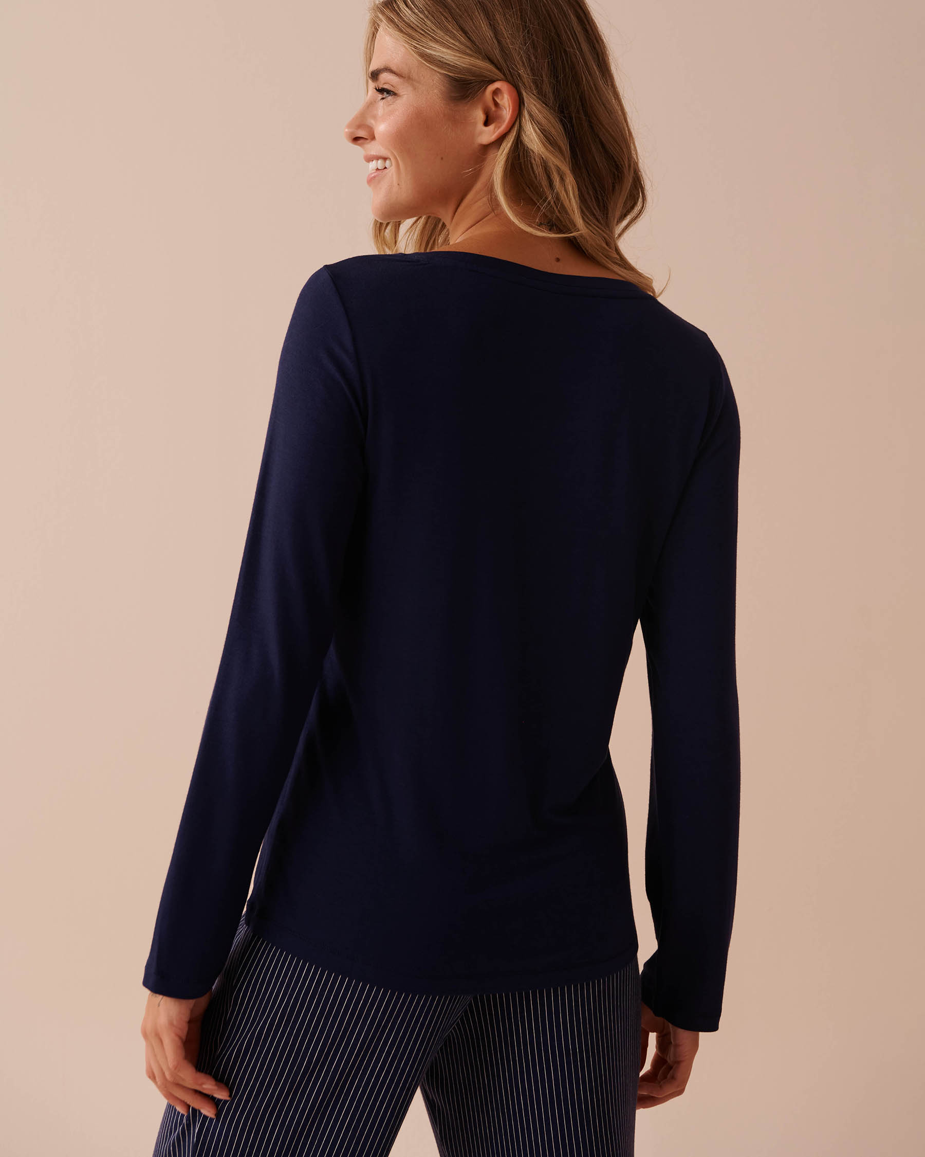 Soft, comfy, and simple - that's our new pajama top in the prettiest shades of blue. Pair it with our matching pajama bottoms and create a relaxing moment that's all you.