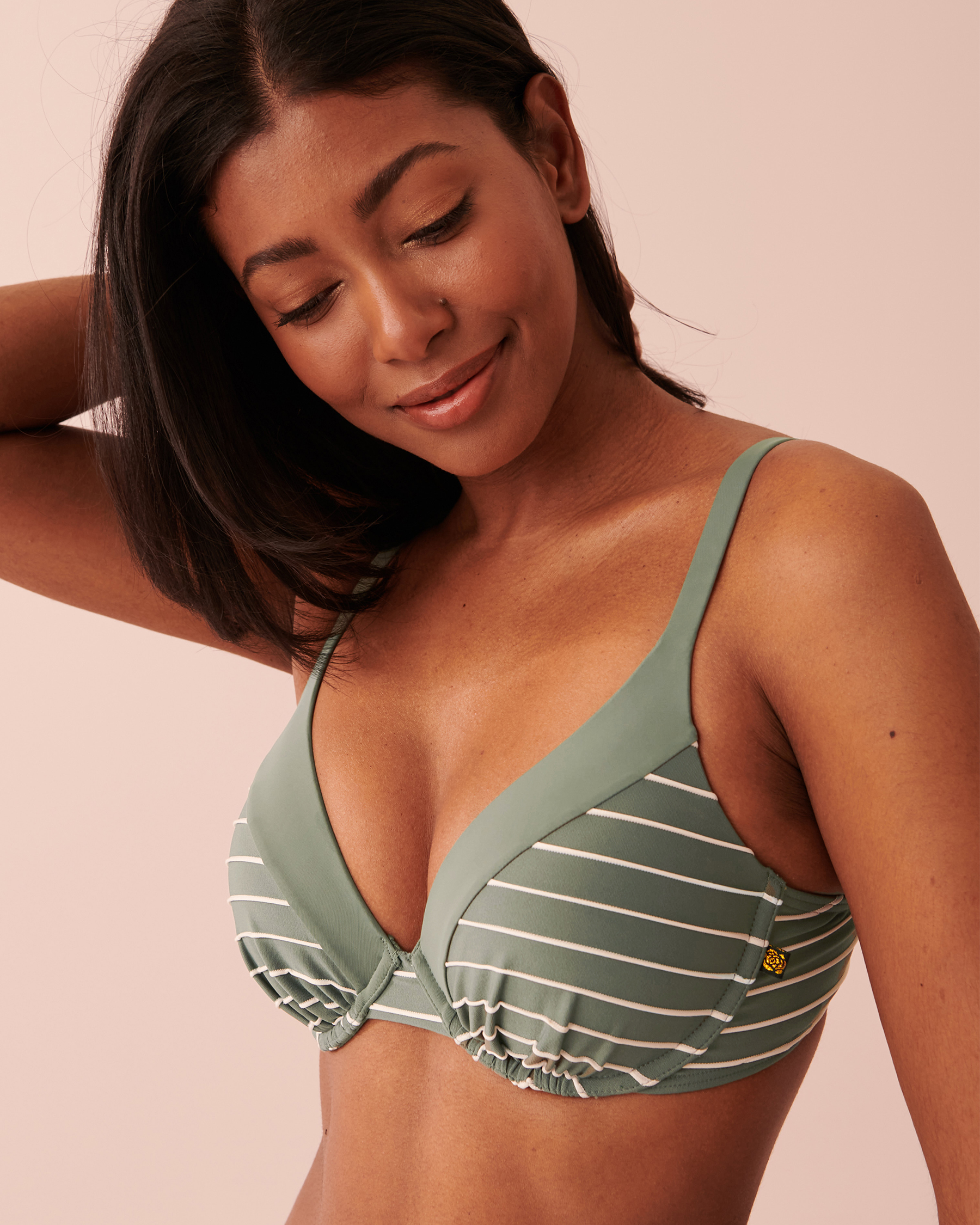 STRIPED Plunge Bikini Top