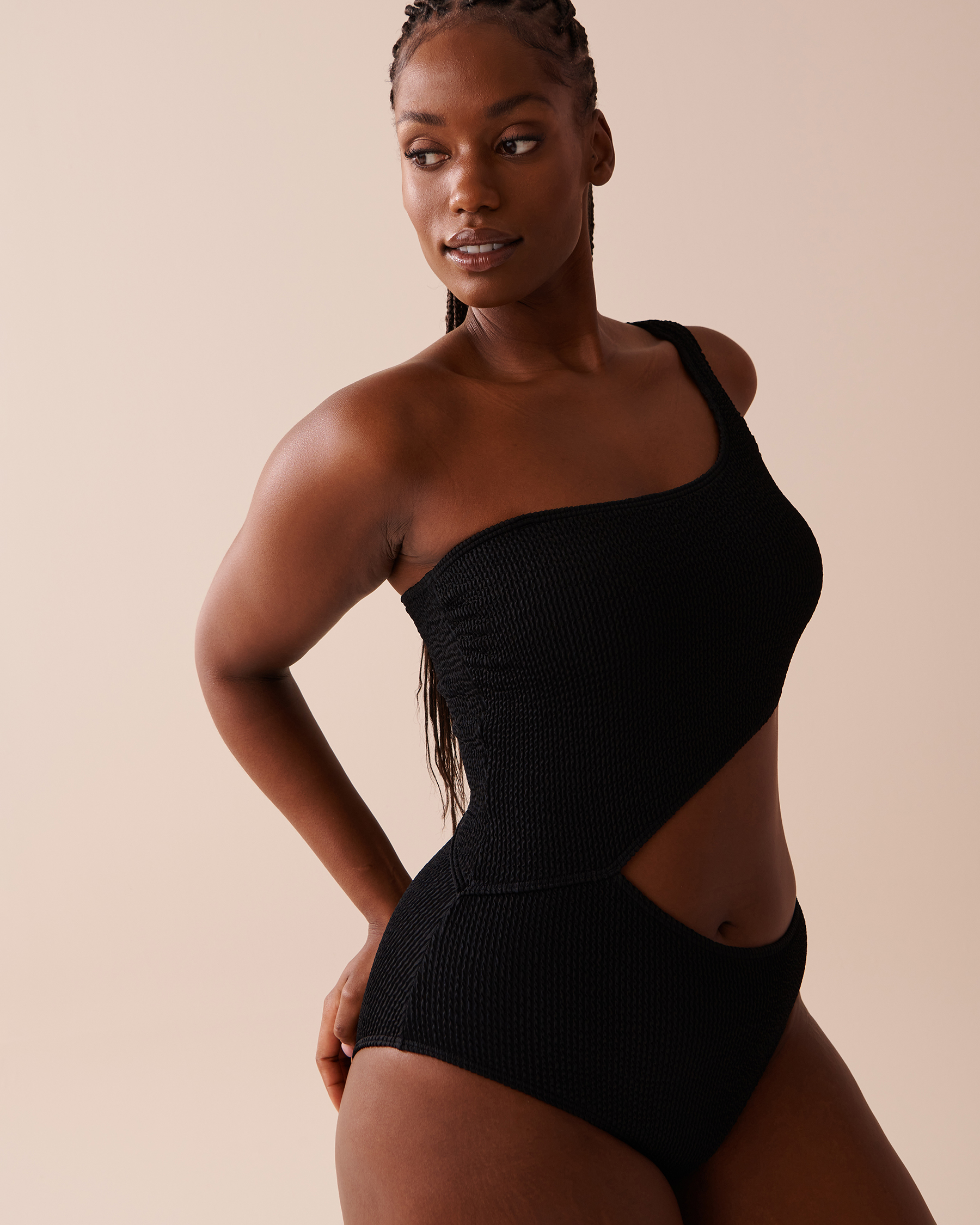 TEXTURED Cut-out One Shoulder One-piece Swimsuit