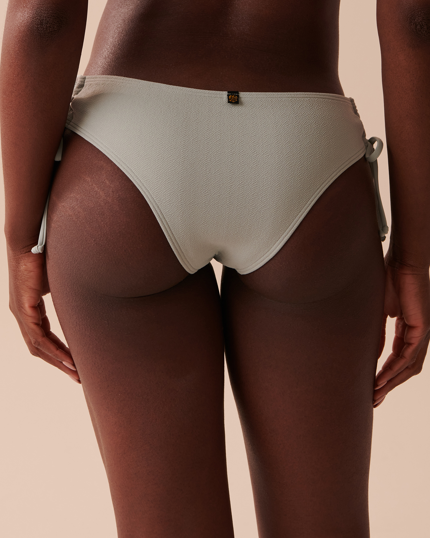With its flattering cut embellished with side ties, this textured cheeky bikini bottom will soon become your summer bff.