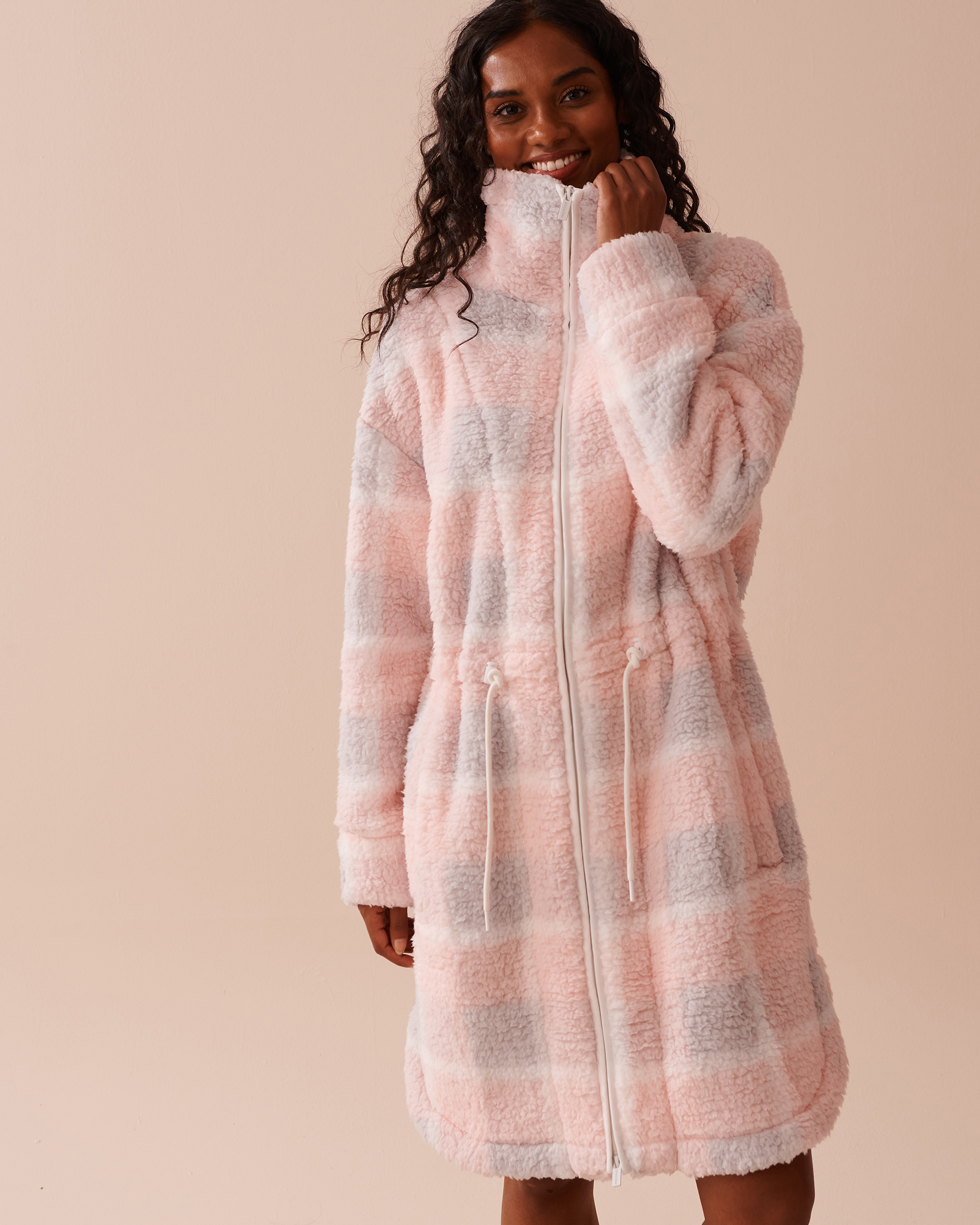 Zip-up Funnel Neck Sherpa Robe
